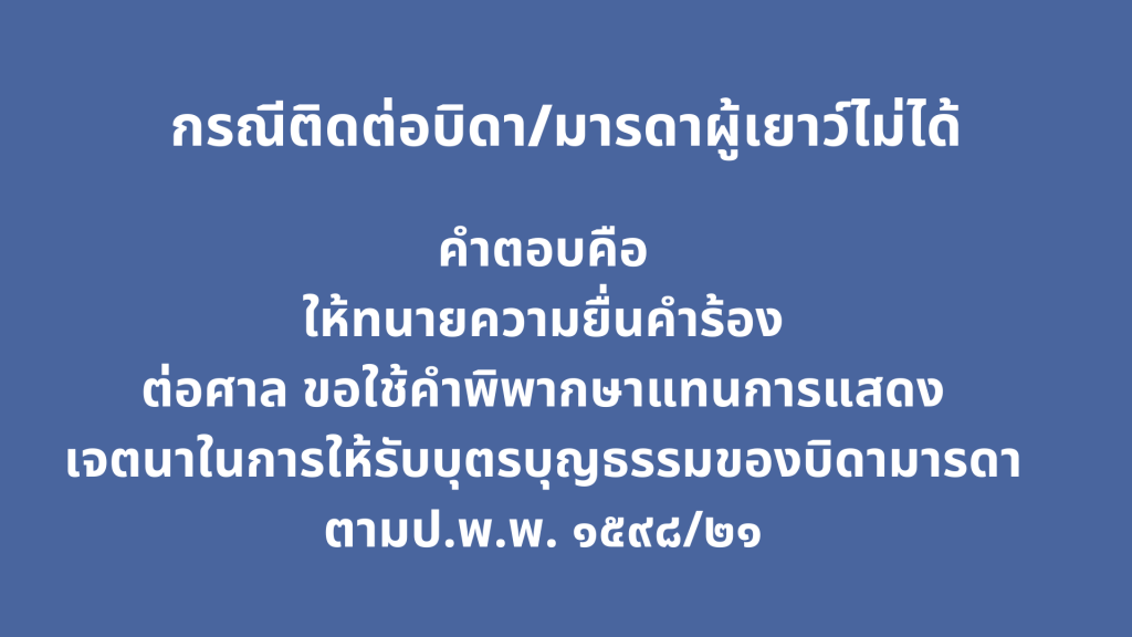Home คดีครอบครัว ติดต่อบิดา/มารดาผู้เยาว์ไม่ได้ จดทะเบียนรับบุตรบุญธรรมได้หรือไม่ มีวิธีการใด คดีครอบครัวคดีอาญาคดีแพ่ง ติดต่อบิดา/มารดาผู้เยาว์ไม่ได้ จดทะเบียนรับบุตรบุญธรรมได้หรือไม่ มีวิธีการใด January 28, 2021 2709 FacebookFacebookXTwitterLINELineติดต่อบิดา/มารดาผู้เยาว์ไม่ได้จดทะเบียนรับบุตรบุญธรรมได้หรือไม่ มีวิธีการใด มีปัญหาคดีความปรึกษาทีมงานทนายกฤษดา โทร 089-142-7773 ไลน์ไอดี @lawyers.in.th Facebook Comments FacebookFacebookXTwitterLINELine