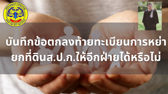 บันทึกข้อตกลงท้ายทะเบียนการหย่ายกที่ดินส.ป.ก.ให้อีกฝ่ายได้หรือไม่